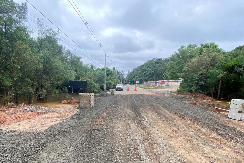 PRC-476 em União da Vitória – Trecho danificado foi recomposto e liberado provisoriamente para o tráfego de veículos. Outros serviços serão realizados conforme as condições climáticas.