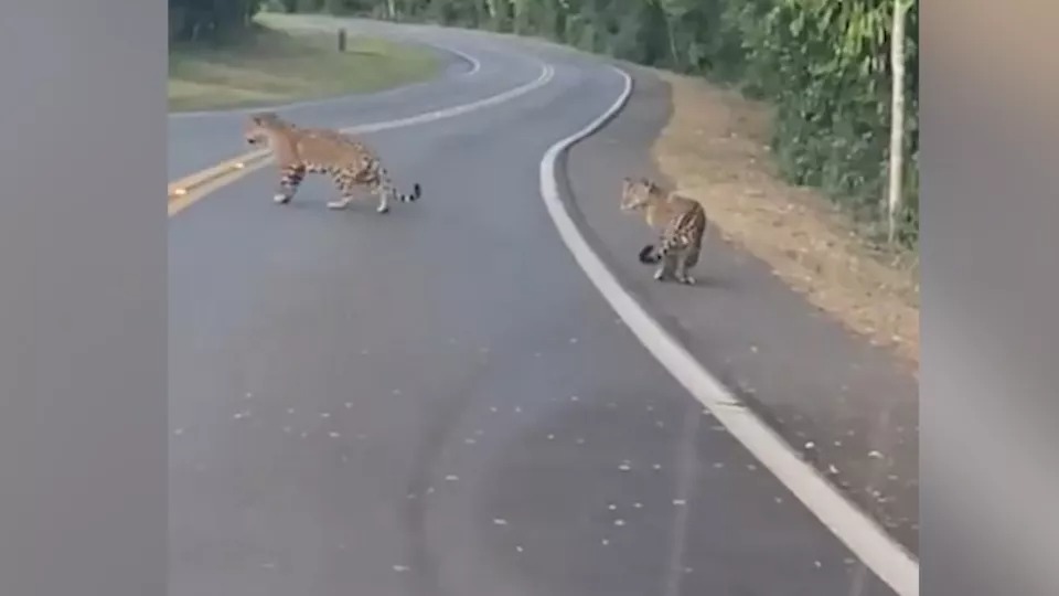 Duas onças-pintadas foram vistas na rodovia das Cataratas neste domingo (01). O registro encantador foi feito por visitantes do Parque Nacional do Iguaçu e divulgado por guias turísticos. As informações são da Catve.