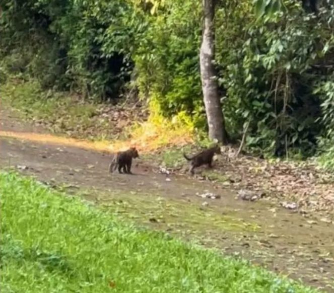 O momento foi registrado em vídeo e compartilhado nas redes sociais. A gravação já soma mais de 22,2 mil visualizações além de diversas curtidas e comentários. Nas imagens, aparentemente sem a mamãe onça-pintada por perto, os dois “gatinhos” aparecem brincando tal qual os “parentes” domésticos e conseguiram conquistar diversos fãs. “Queroo! Dessa cor eu não tenho”, brincou uma jovem.