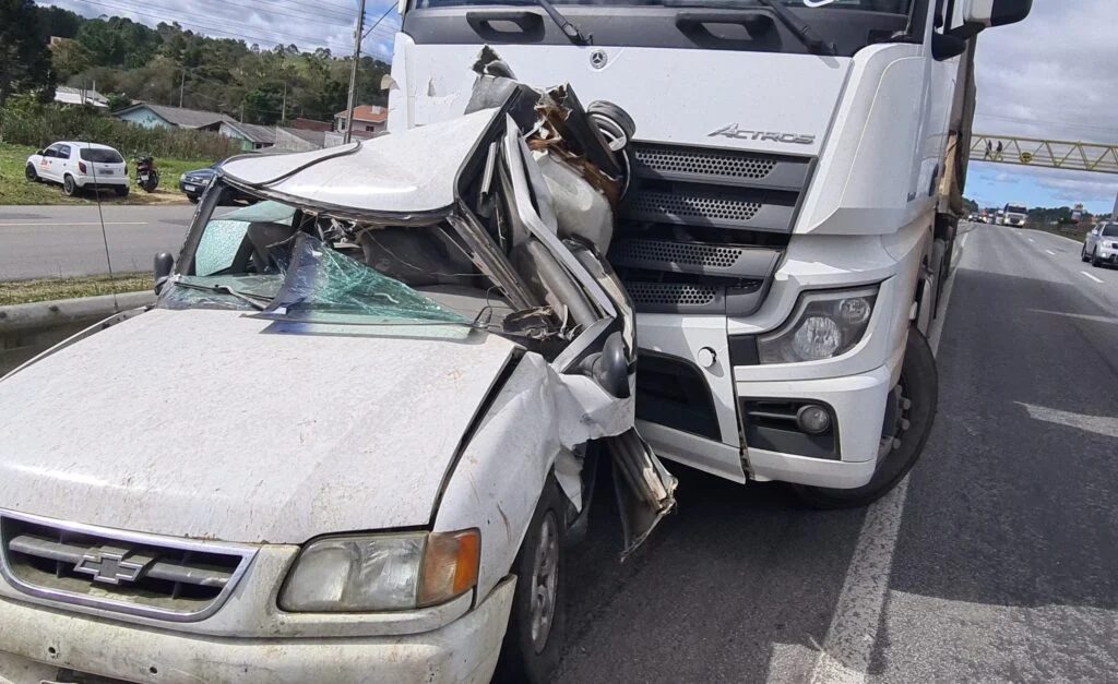 O acidente aconteceu no km 66, sentido Curitiba. O choque foi muito violento e praticamente nada sobrou da caminhonete. O motorista da carreta disse que não percebeu a caminhonete parada na rodovia.
