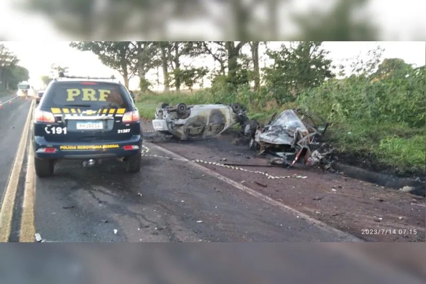 Um Fiat Uno e um Fiat Palio pegaram fogo após o forte impacto. O motorista do Uno ficou encarcerado e morreu carbonizado no local do acidente. No Palio, o motorista e os passageiros do carro conseguiram sair do veículo.