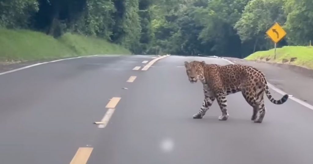 Antes, a onça-pintada já havia sido flagrada em comportamento reprodutivo com a onça Cacira. Desta vez, ele estava sozinho atravessando a via.