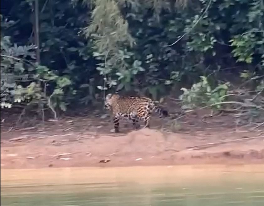 O segundo flagra foi do guia de pesca Carlos Garbin, conhecido como Kirela, feito nesta segunda-feira, 24. Como se soubesse que estava sendo admirada, a onça caminhou e fez poses para a câmera às margens do rio, perto da Ilha Moema.