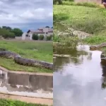 Em um vídeo feito pelos próprios funcionários – assista abaixo – é possível ver o momento que o animal, que ainda é filhote, salta da árvore e foge correndo e desaparece por uma região de mata no local.