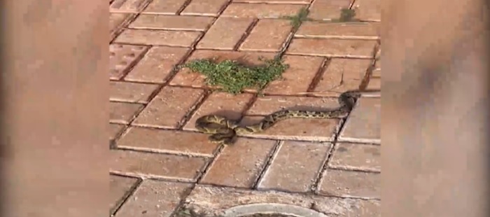 Cobra é flagrada em quintal de casa e bombeiros são mobilizados. Foto: Reprodução