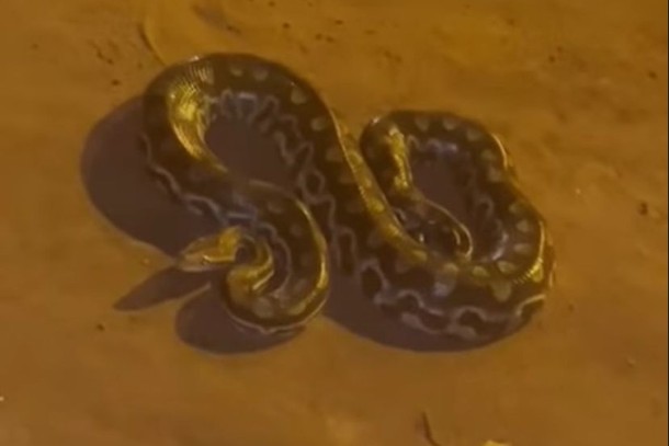 VÍDEO: jiboia é capturada no meio da rua em Terra Rica