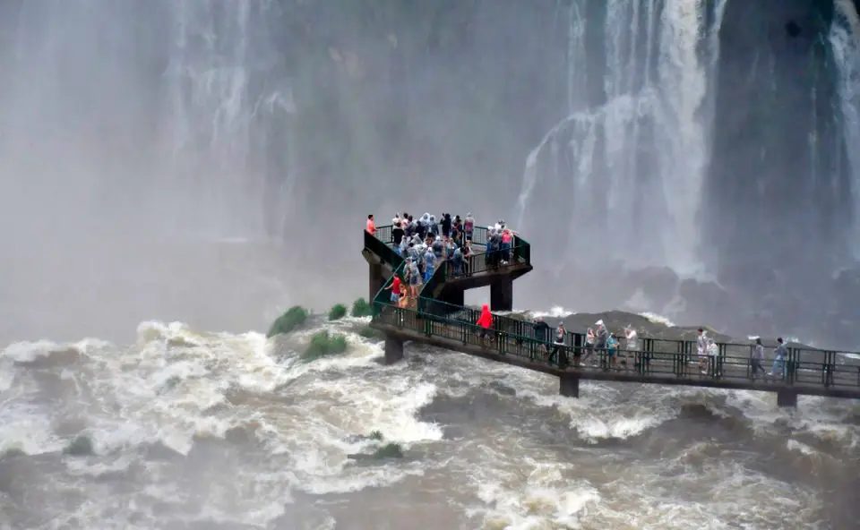 Mesmo com a vazão muito acima da média, todos os passeios do parque estão liberados, incluindo a passarela que dá acesso ao mirante da Garganta do Diabo.