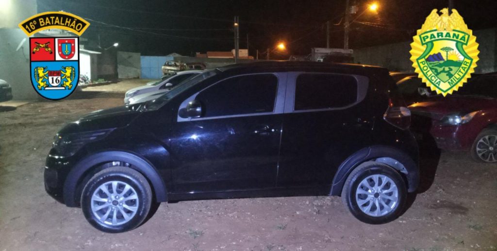 Veículo apreendido com os suspeitos de tentarem aplicar um golpe contra uma idosa em Maringá. Foto: PMPR