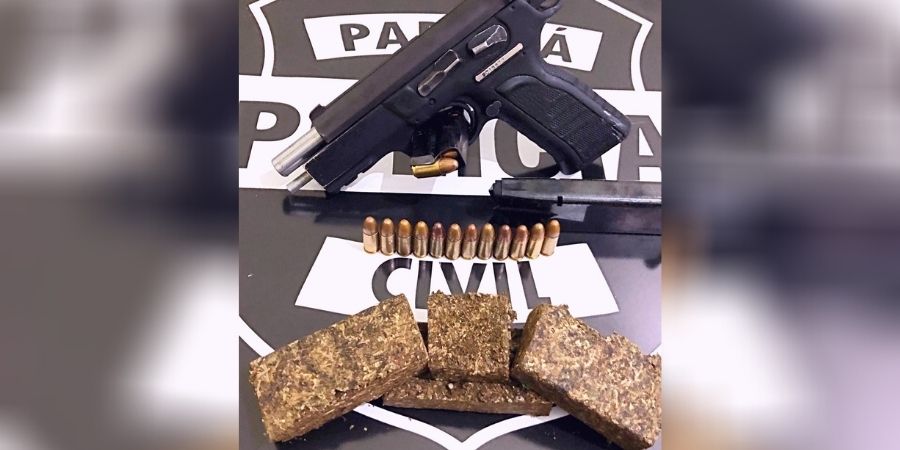 Mas a polícia descobriu a casa dele e no local foram encontrados 210 gramas de maconha e uma pistola 9mm com carregadores e munição.