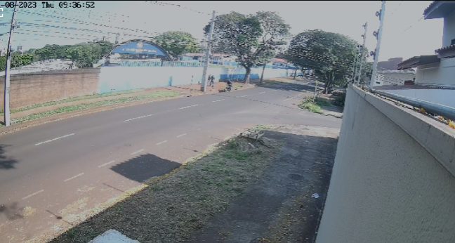 As imagens mostram a mulher caminhando pela calçada, quando dois indivíduos passam de moto pela avenida. Ao notarem a vítima sozinha, eles voltam e cometem o crime.