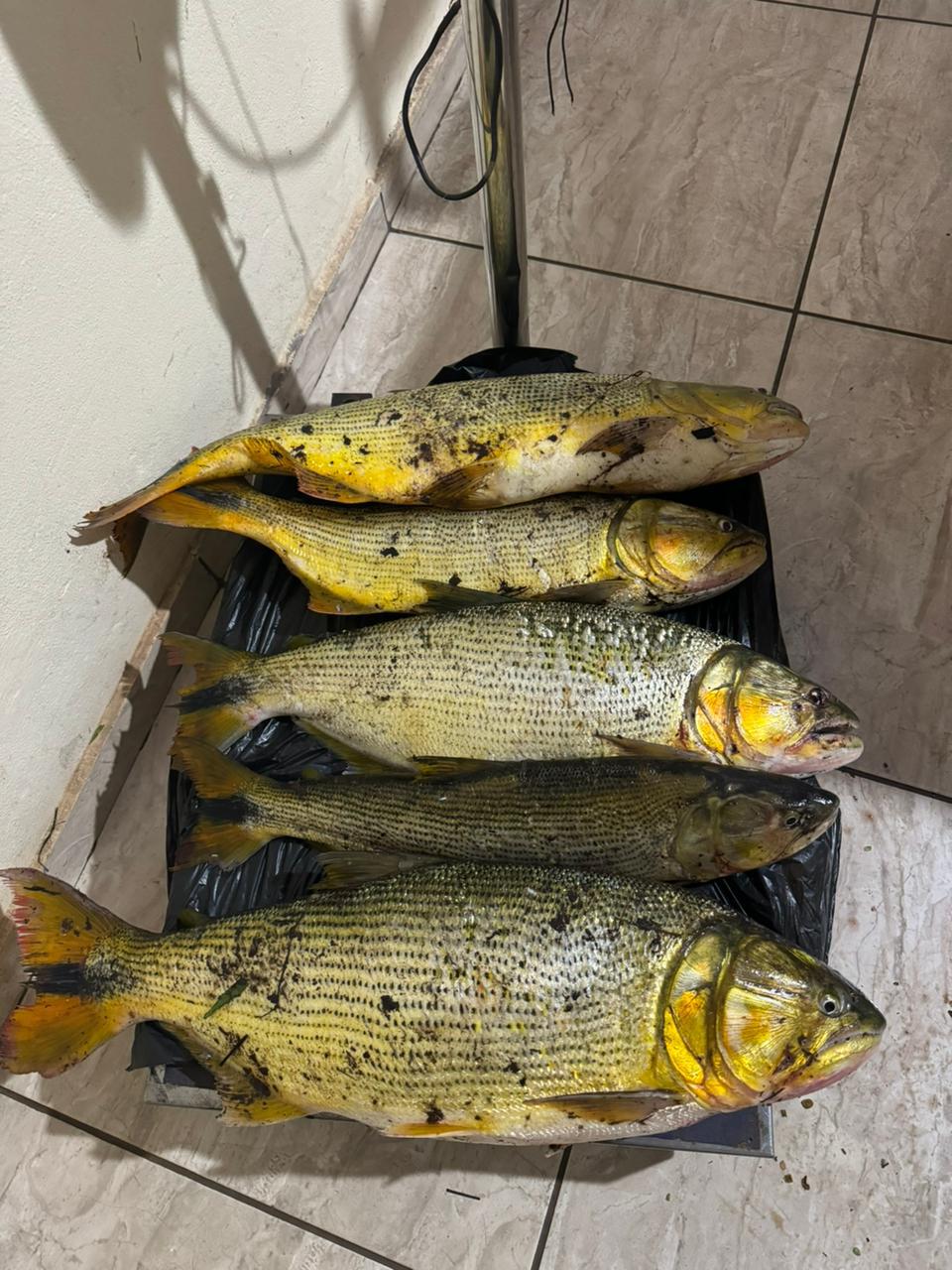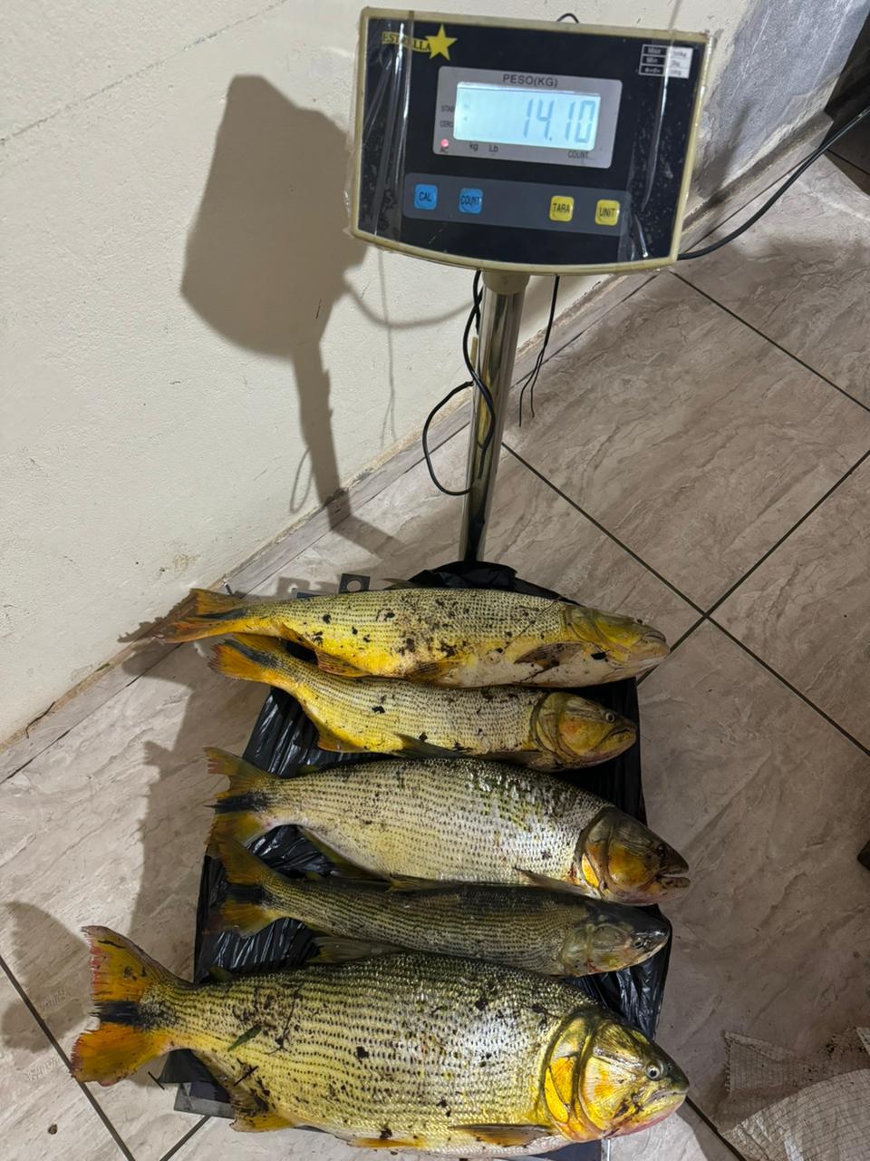 Após uma incursão nas matas às margens do rio, por volta das 23h, os policiais localizaram os infratores a apenas 110 metros da barragem, realizando pesca durante o período proibido de Piracema. Durante a abordagem, foram encontrados 5 peixes da espécie Dourado, totalizando 14,1 kg.