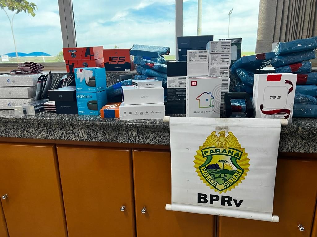 Coforme a Polícia, os homens estavam em um veículo GM Onix, com placa de Minas Gerais, e foram parados em uma abordagem de rotina. As mercadorias estavam no porta-malas. Foram apreendidos 22 aparelhos celulares, 37 conversores de sinal de TV, 12 HDs, 2 assistentes pessoais (Alexa) e 1 perfume.