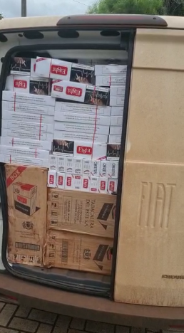 Ao fiscalizar o veículo, um furgão, foi encontrado cerca de 20 mil maços de cigarros contrabandeados do Paraguai. A Polícia Rodoviária Federal constatou também que o carro era roubado e tinha placas falsas.