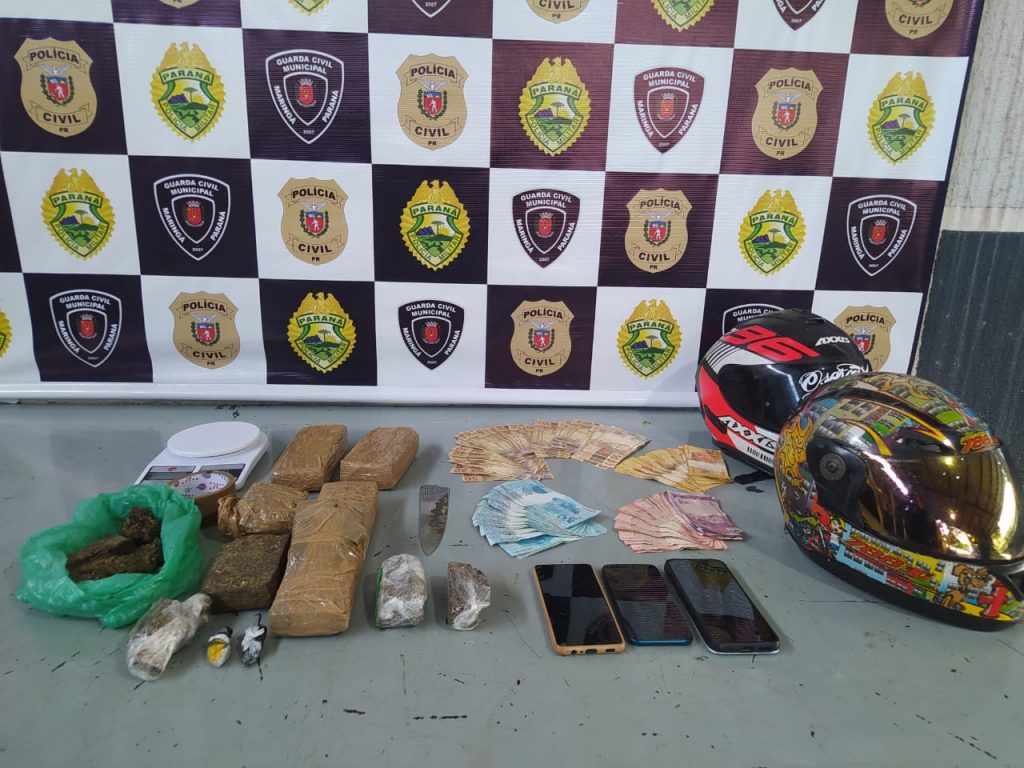 Suspeitos de tráfico são presos com drogas, carro furtado e motocicleta com mais de 90 multas, em Maringá. Foto: Equipe GMC Online