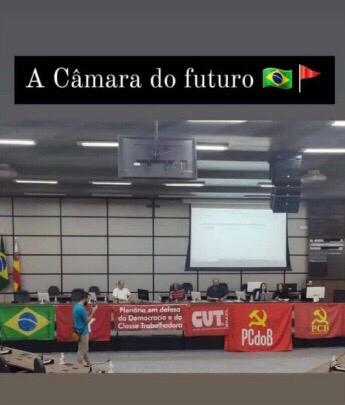 Um ouvinte que preferiu não se identificar enviou a para a redação da CBN a foto que está sendo questionada pela Câmara Municipal. Na foto há apenas a legenda: “A Câmara do Futuro”, não há o termo “comunista de esquerda”. Veja a foto: