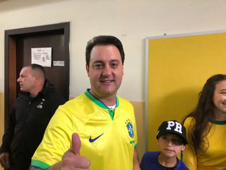 Vestido com uma camisa personalizada da seleção brasileira, Ratinho Júnior entrou na cabine de votação com um dos filhos, e tão logo concluiu as suas escolhas na urna eletrônica, ele posou para fotos, novamente esbanjando otimismo. Aliás, sobre a urna eletrônica, o governador demonstrou confiança, sobretudo diante da chance de vencer no primeiro turno.