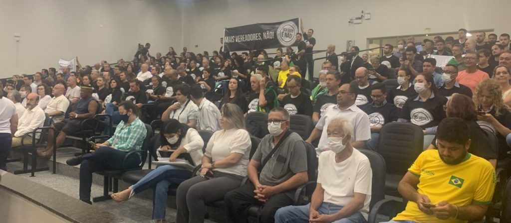 Mas as aprovações foram sob muita pressão da população que lotou o plenário. A sociedade civil organizada, liderada pela Associação Comercial e Empresarial de Maringá (Acim), se mobilizou e esteve em peso no auditório da Câmara durante a sessão. Pessoas com faixas e vestidas com camisetas pretas, com a frase: “meu voto é não”. A população não se calou, com vaias e gritos, nem durante a leitura dos itens da pauta e durante a votação.