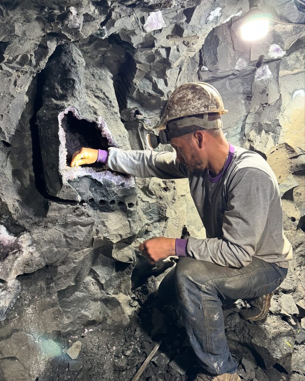 Uma mina de ametistas localizada em Chopinzinho, no sudoeste do Paraná, vem chamando atenção nas redes sociais e atraindo visitantes pela beleza das formações e pela possibilidade de conhecer de perto o processo de extração das pedras preciosas. Legalizada e aberta à visitação guiada, a mina pertence a Aluizio Dequadros, que herdou o espaço do pai e agora decidiu investir integralmente no negócio.